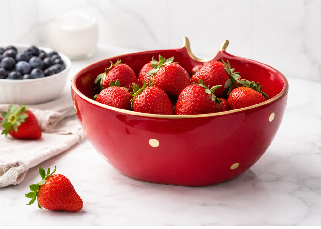❤️ Crimson Red Ceramic Bowl with Gold Accents