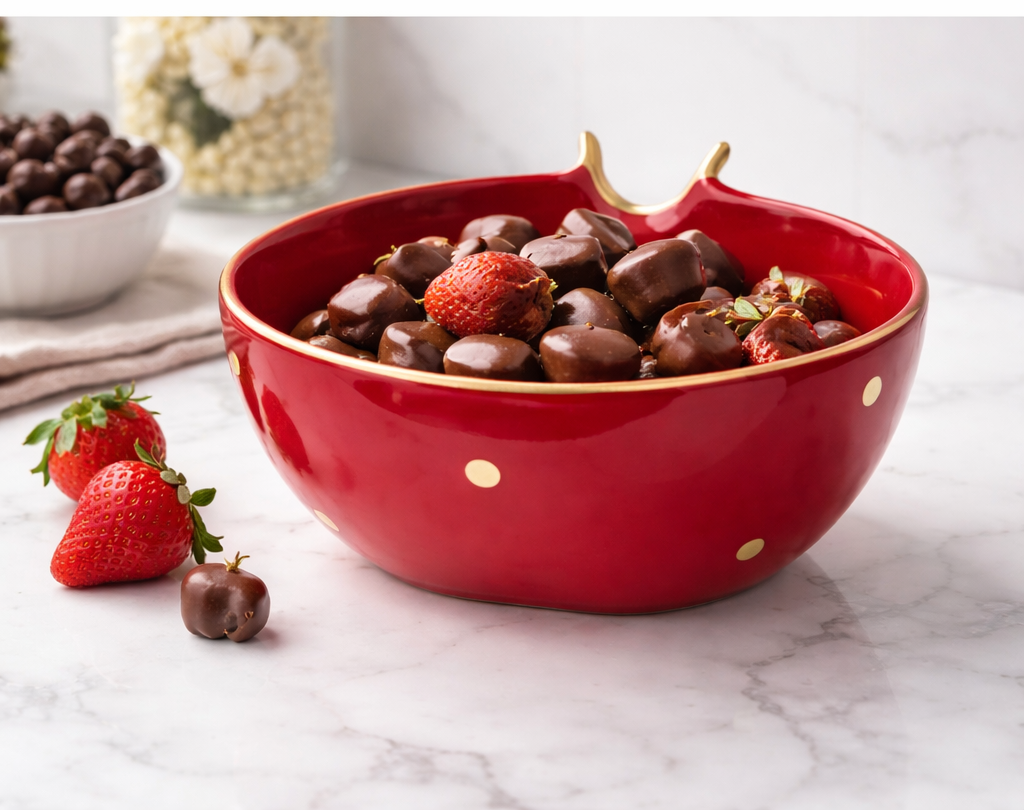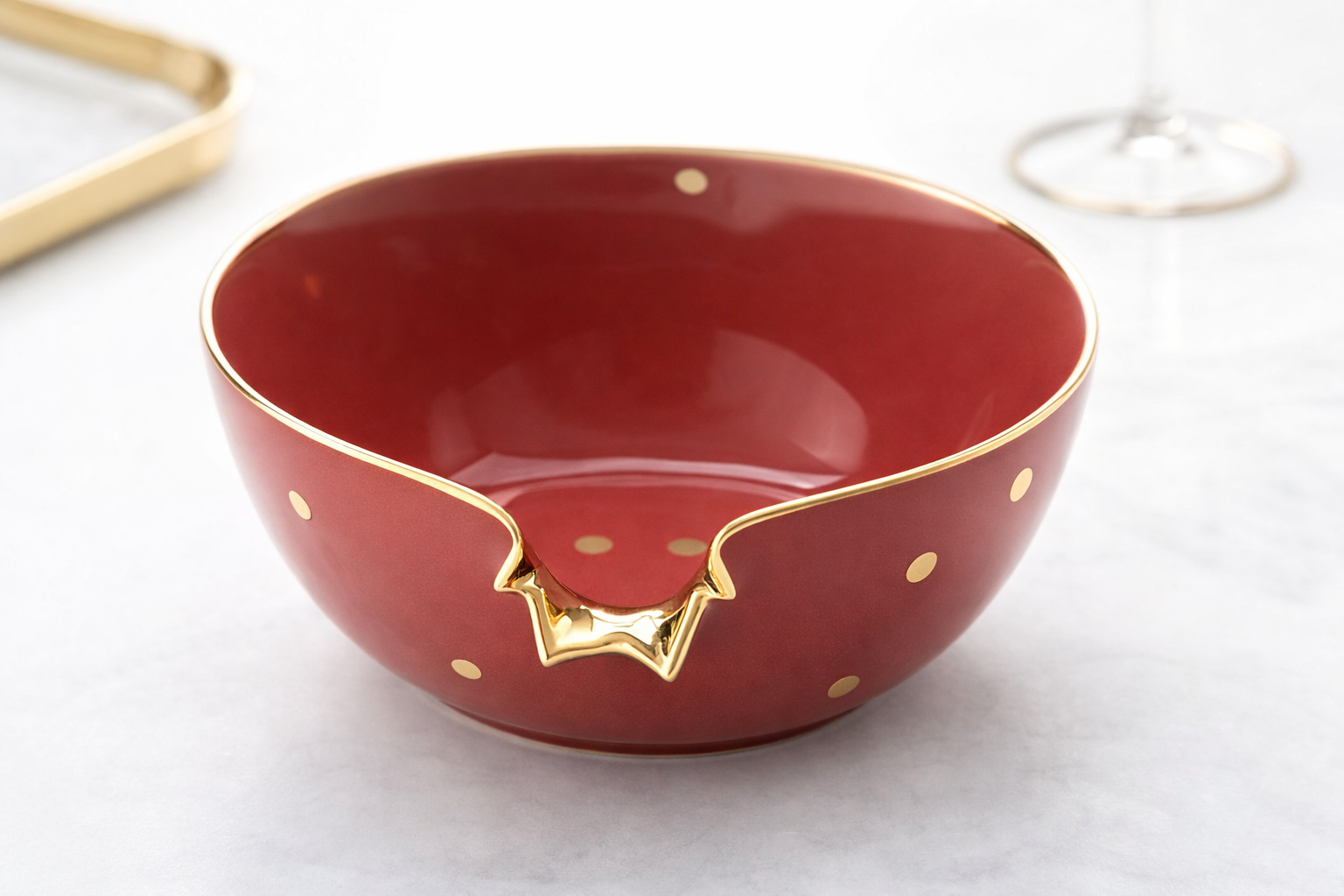 Add elegance to your table with this crimson red ceramic bowl featuring delicate gold polka dots and a refined gold rim. Perfect for serving fruits, desserts, snacks, or festive treats, it combines luxurious design with everyday functionality.